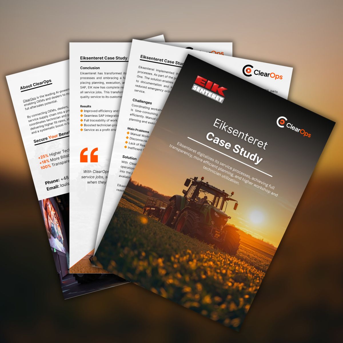 Eiksenteret hat seine Werkstattprozesse modernisiert, indem manuelle Planung und getrennte Systeme durch eine vollständig digitale Serviceplattform ersetzt wurden. Mit der Einführung der ClearOps Service Cloud, nahtlos integriert in SAP Business One, erhielt Eiksenteret Echtzeit-Transparenz über Technikerverfügbarkeit, Auftragsstatus und Servicehistorie.